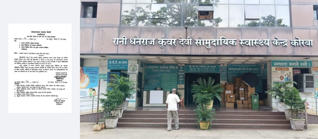 – **सरकारी आदेश की खुलेआम अवहेलना! कोरबा के रानी धनराज कुंवर देवी स्वास्थ्य केंद्र में नहीं हो रहा पालन, ग्रामीणों की बढ़ी मुश्किलें