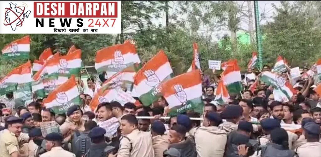 मनरेगा में बदलाव के विरोध में युवक कांग्रेस का प्रदर्शन, पहली बैरिकेडिंग तोड़ी